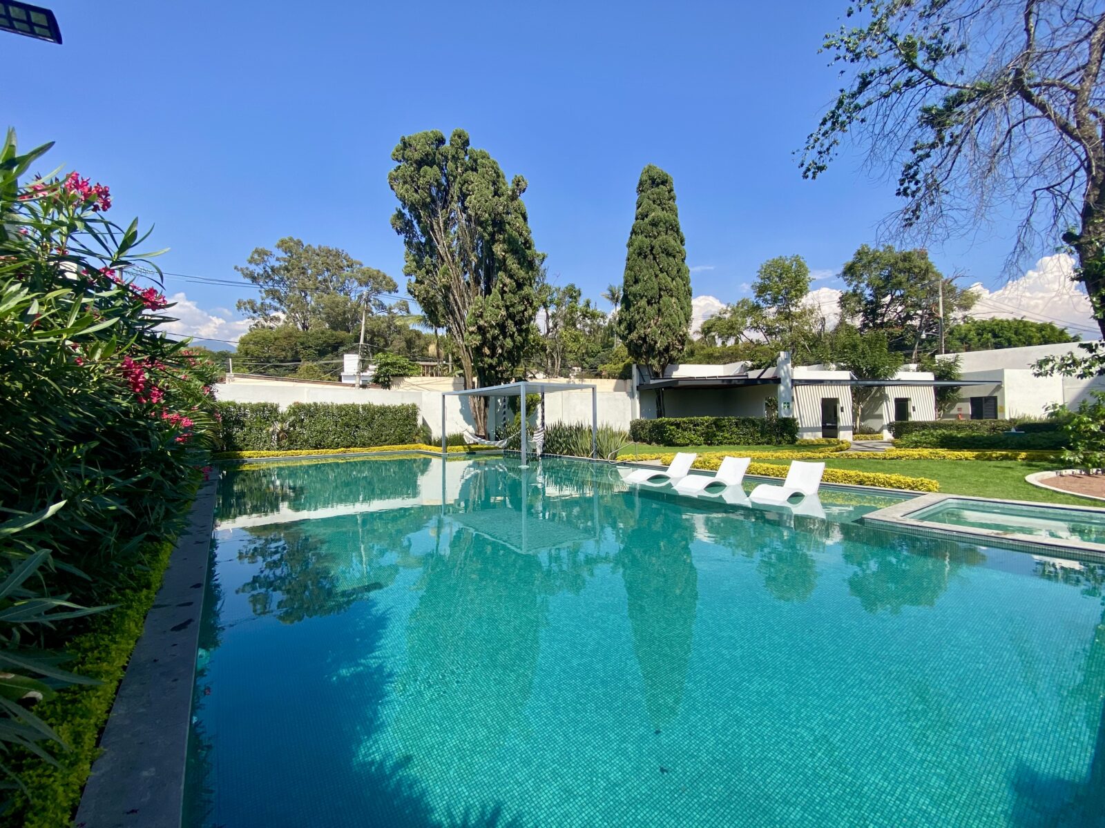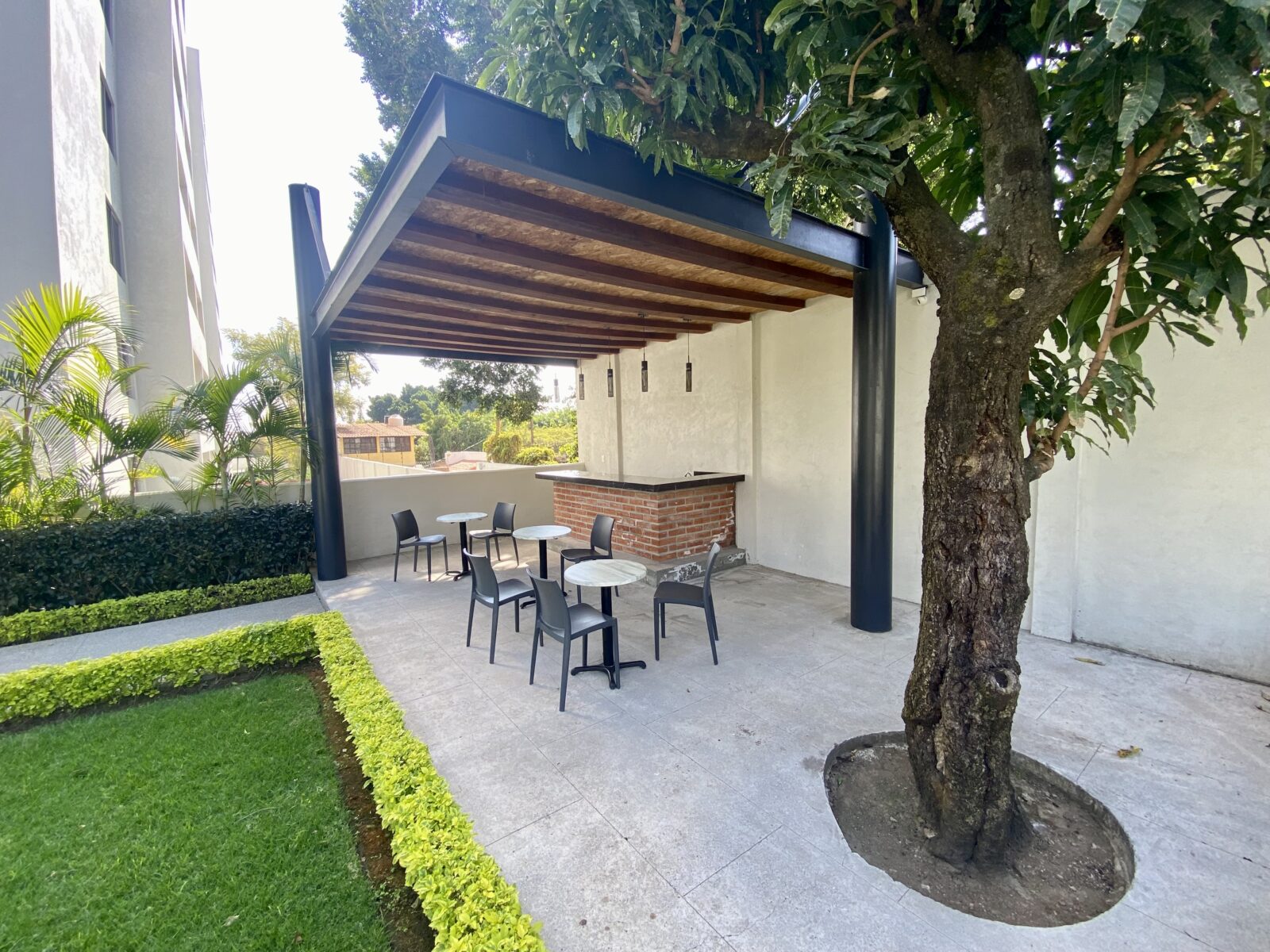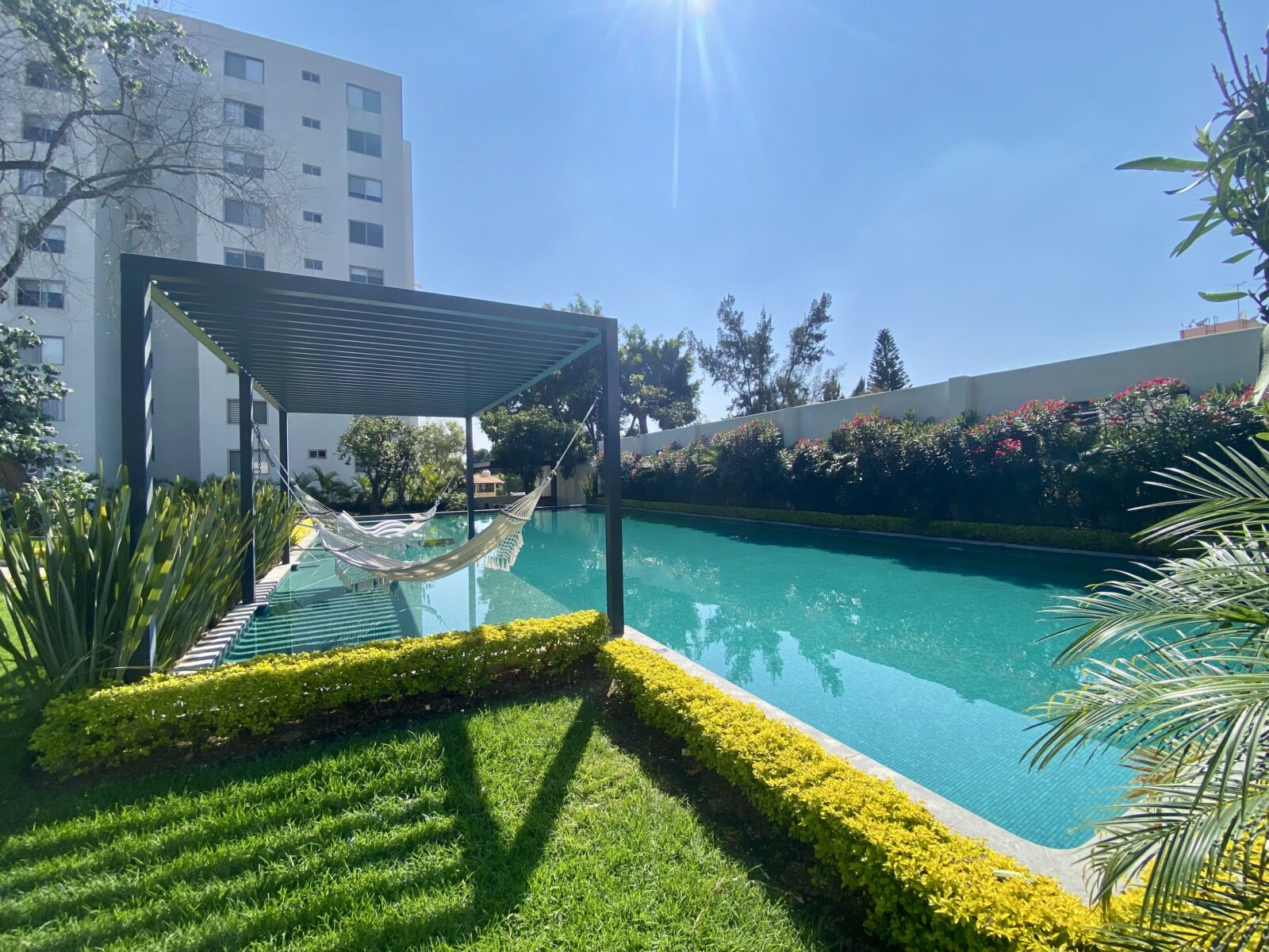 Disfrute de amenidades de primer nivel: salón de usos múltiples, gimnasio, área de coworking, ludoteca, lugar para juegos infantiles, cafetería, cancha de tenis, cancha de pádel, jardines, terraza bar, fire pit, alberca con camastros y hamacas, asoleadero, jacuzzi, baños comunes para hombres y mujeres y área para asados.